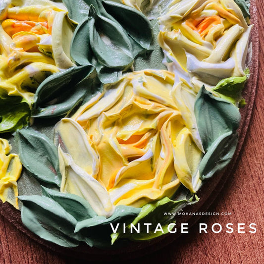 Vintage Roses ~ Textured Art (10 x 6 inches)
